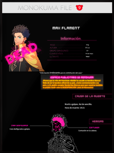 Mitsu Harada, del Curso de Reserva; Max Flament, Rebelde Definitivo; Jun Imata, Payaso Definitivo. . . ¡Y el tan querido Enmascarado que entró de la nada a la Academia a comienzos de esta semana, cuya identidad resultó ser Roxanne Jones, Medium Definitiva! Esas son. . . Cuatro muertes. Wow. Y todas legales además. ¡Qué emocionante! ¡¡Qué desesperante!! . . .Y cuánta sangre por todas partes.